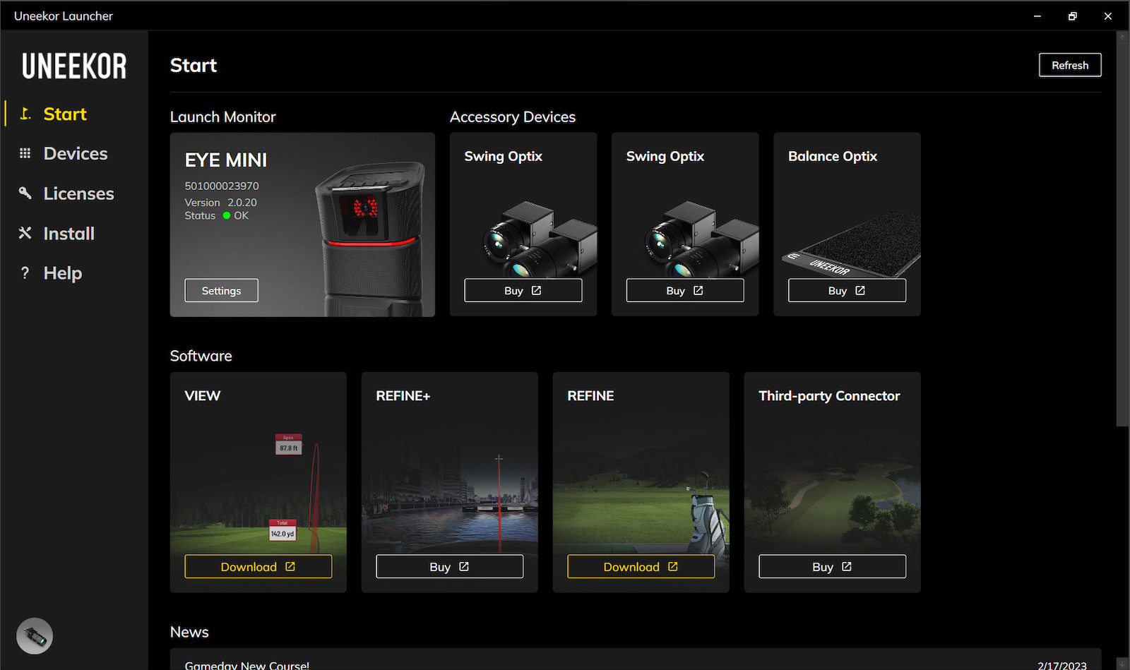 • Supports indoor golf practice and swing training