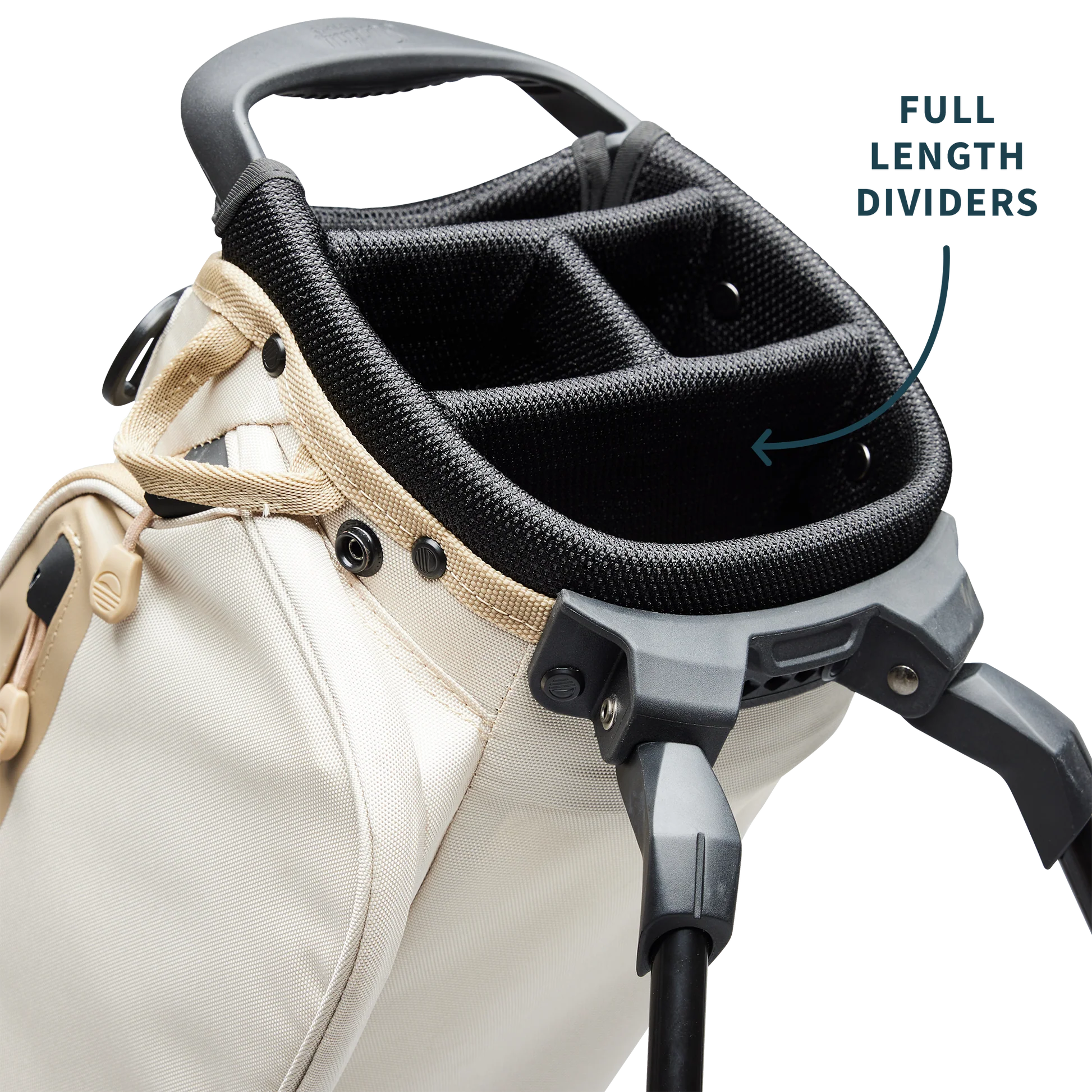 A 4-way top divider provides basic organization while maintaining a smaller overall footprint. This design supports partial club setups and quicker access without the bulk of full-size stand bags.